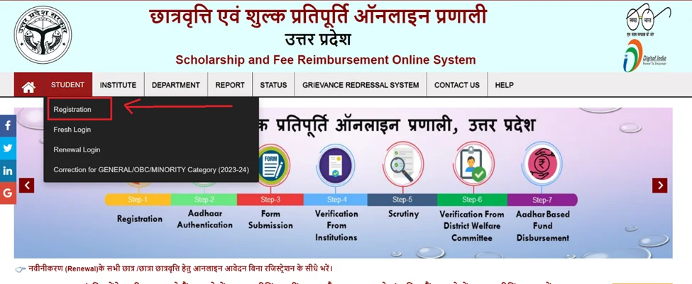 यूपी स्कॉलरशिप पोर्टल पर रजिस्ट्रेशन की चरण-दर-चरण प्रक्रिया